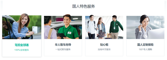 升级服务二:华人取车向导。和车行人员无法沟通、看不懂合同协议、不知道要准备哪些证件材料、看不懂交规……,游客在海外租车的过程中常常会因为语言的不通,而遇到这些不便和问题。也会因为这些问题和不便而在租车和用车过程中遭受不必要的损失。为此惠租车推出了华人取车向导服务,为用户提供全程的中文向导服务,所有向导人员都有多年目的地自驾经验,经过惠租车严格的培训审核,为用户提供服务。行前提醒,为用户清点证件材料,确认行前注意事项;租车合同审核,协助核对合同内容,购买的产品等;取车时帮助车辆检查,并细致讲解当地交规。细致的服务,让用户租的省心,用的安心。
