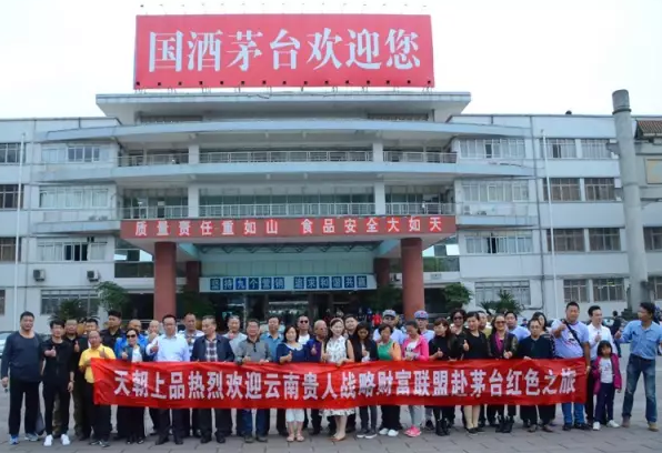 2017年4月19日-21日,天朝上品驻云南办事处主任刘一君率云南贵人战略财富联盟一行40余人莅临天朝上品酒业考察。期间,贵人战略财富联盟参观了革命圣地遵义会议会址纪念馆、茅台酒厂包装车间、国酒文化城、天朝上品仁怀旗舰店,观看杨柳街夜景,倾听美酒河涛声,在中国酒都浓郁的酒香中,与柔和酱香白酒展开了一次心灵对话。