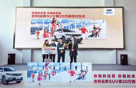 伴随着第20万辆远景SUV的成功交付,吉利汽车销售公司市场总监戴民表示:“20万用户的信赖和认可让远景SUV站上了新的台阶未来,吉利汽车将始终怀着一颗敬畏的心,尊重、感恩用户,始终聆听消费者的心声,不断满足用户的需求,努力为车主提供更可靠、安心、贴心的高品质产品和服务,做车主一生的伙伴,我们也相信,在远景SUV的陪伴下,各位车主朋友的幸福将更进一步。”