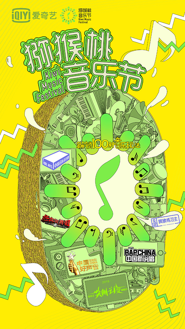 爱奇艺猕猴桃音乐节作为网络视频平台首创的综合音乐全新品类。凭借新鲜的玩法、独特的音乐享受和超强规模的福利派送,以及官方吉祥物猕猴桃君的形象,该品牌自推出后,就受到越来越多的年轻人的关注与喜爱。
