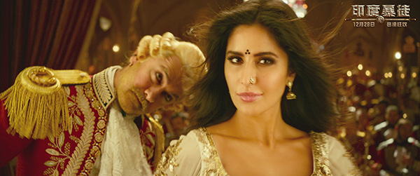 电影一场重头戏中,米叔饰演的弗兰基为了能与卡特莉娜·卡芙饰演的苏莱娅相会,打扮成英国军官的模样,冒死闯入禁止印度人入内的英国贵族会所,在众目睽睽之下瞒天过海,与心爱的女人热舞歌唱。本次曝光的“热舞”特辑中,就揭秘了这段“刀锋上的求爱”拍摄秘辛。有着“世界最性感女性”的卡特莉娜·卡芙妖娆的舞姿极为养眼,充分诠释出片中“一代名媛”的尤物本色,而阿米尔·汗则是以丰富表情和肢体语言作为积极的回应。原来看似在印度电影中常见的舞蹈,竟然经历了幕后的多次排练,才使得这场欢快的热舞片段充满了诱惑力,令荷尔蒙井喷。