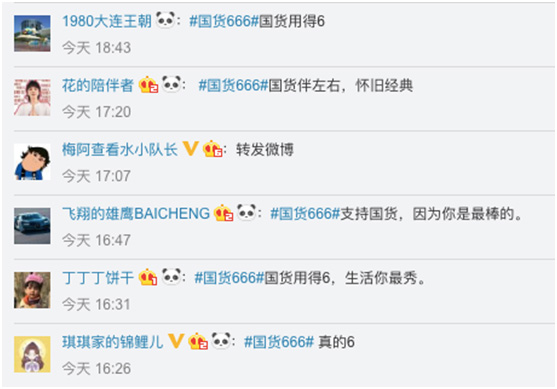 哈弗M6以致敬中国经济型品牌为背景,在宏观国家背景下,探寻国货与国人的情感联结。在国家经济趋势的背景下,#国货666#跨越品牌维度,成为与每个国人息息相关的强互动话题。#国货666#话题下,无数国人积极转发评论,表达对国货的支持。