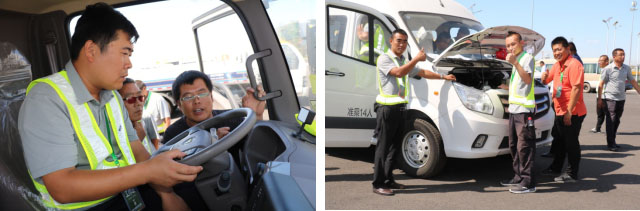 在车辆交付现场,福田智蓝新能源的工作人员正在对南航的驾驶人员举行实车培训工作。“车辆已经投入运营,如何保障产品服务机场是我们接下来最重要的任务。除了这次运营前我们组织驾驶员的实车驾驶和日常维护的培训外,我们还有专门的机场用车维护小组,按“智蓝服务”标准24小时保障该批车辆的实际运营,为大兴机场这张国际名片的打造做出我们应尽的责任。”负责本次车辆交付的福田智蓝新能源项目经理这样说道。