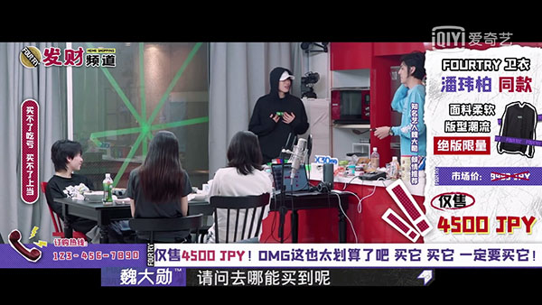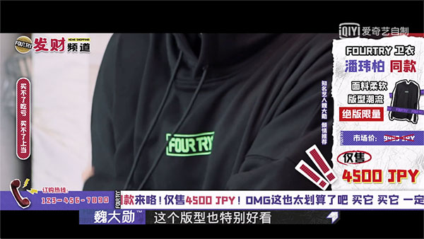 同样让人捧腹的还有限定合伙人魏大勋,由于台风天气未能按时上岗FOURTRY新任导购,他不得不在家中练习推销技能 “电视购物大法”,亲自上身FOURTRY BOX LOGO卫衣的他嘴里不停冒出质量太好了、穿着非常舒适、版型也特别好看等一系列彩虹感叹,那夸张的表情加上刻意的动作,好像打开了电视购物栏目。不过还得承认魏大勋的“电视购物大法”功力强劲,第二天FOURTRY重新开张营业后,魏大勋凭着“这个刺绣太完美了我也想要两件”和“可以送男朋友”等短平快的犀利输出,让店里的卫衣成为了进店客人的必买款。