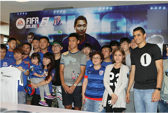8月24日下午,申花队长莫雷诺、边路“快马”吕征来到鱼网咖海伦国际店,与FIFA Online 3的申花球迷玩家们进行了一场真刀真枪的较量,共同体验了申花队在游戏中的魅力。